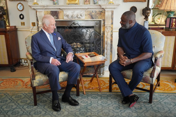 King Charles III (left) with Idris Elba at an event for The King's Trust to discuss youth opportunity, at St James's Palace in central London. The King and Mr Elba, an alumnus of The King's Trust (formerly known as The Prince's Trust), are meeting about the charity's ongoing work to support young people, and creating positive opportunities and initiatives which might help address youth violence in the UK, as well as the collaboration in Sierra Leone between the Prince's Trust International and the Elba Hope Foundation., Credit:Yui Mok / Avalon
