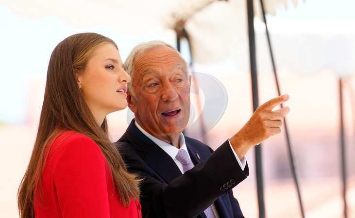 La princesse Leonor et le président de la République portugaise, Marcelo Rebelo de Sousa au palais de Belém à Lisbonne, Portugal, le 12 juillet 2024. © Lalo Yasky/Bestimage President Rebelo de Souza recives Crownprincess Leonor of Spain at Belem Palace. Princess Leonor is in a 1 day visit to Portugal in her first official trip to a foreign country. Lisbon, Portugal - July 12, 2024.