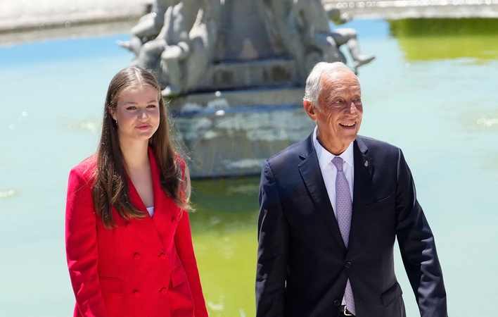 La princesse Leonor et le président de la République portugaise, Marcelo Rebelo de Sousa au palais de Belém à Lisbonne, Portugal, le 12 juillet 2024. © Lalo Yasky/Bestimage President Rebelo de Souza recives Crownprincess Leonor of Spain at Belem Palace. Princess Leonor is in a 1 day visit to Portugal in her first official trip to a foreign country. Lisbon, Portugal - July 12, 2024.