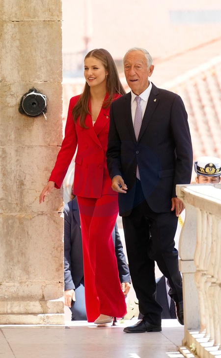 La princesse Leonor et le président de la République portugaise, Marcelo Rebelo de Sousa au palais de Belém à Lisbonne, Portugal, le 12 juillet 2024. © Lalo Yasky/Bestimage President Rebelo de Souza recives Crownprincess Leonor of Spain at Belem Palace. Princess Leonor is in a 1 day visit to Portugal in her first official trip to a foreign country. Lisbon, Portugal - July 12, 2024.