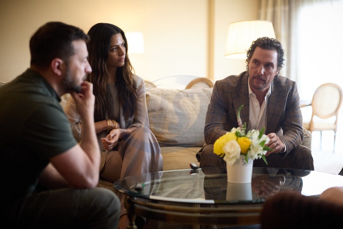 Spotkanie prezydenta Ukrainy Wołodymyra Zełenskiego z Matthew McConaugheyem i jego żoną Camilą Alves podczas jego podróży do Stanów Zjednoczonych