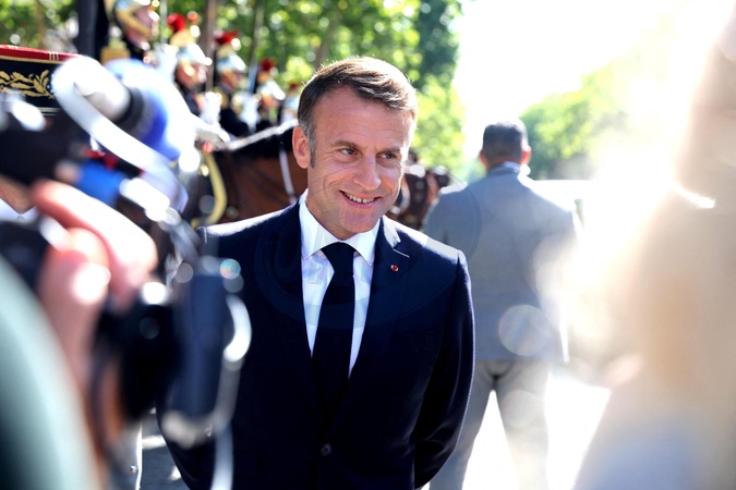 Le président de la République française Emmanuel Macron au départ de la cérémonie du 144ème défilé militaire du 14 juillet, jour de la Fête Nationale à Paris, France, le 14 juillet 2024. © Dominique Jacovides/Bestimage French President during the Bastille Day parade, in Paris, France., on July 14, 2024.