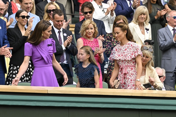 The Princess of Wales (Catherine (Kate) Middleton, princesse de Galles) with her daughter Princess Charlotte (La princesse Charlotte de Galles) and her sister Pippa Middleton attend the Gentlemen's Singles Final on day fourteen of the 2024 Wimbledon Championships at the All England Lawn Tennis and Croquet Club on July 14, 2024 in London, England. © Chryslene Caillaud/Panoramic/Bestimage