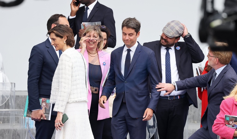 Amélie Oudéa-Castéra, ministre des Sports et des Jeux olympiques et paralympiques et Gabriel Attal, Premier ministre, lors d'un bain de foule à la cérémonie du 144ème défilé militaire du 14 juillet, jour de la Fête Nationale, à Paris, France, le 14 juillet 2024. © Dominique Jacovides/Bestimage rench President during the Bastille Day parade, in Paris, France, on July 14, 2024.