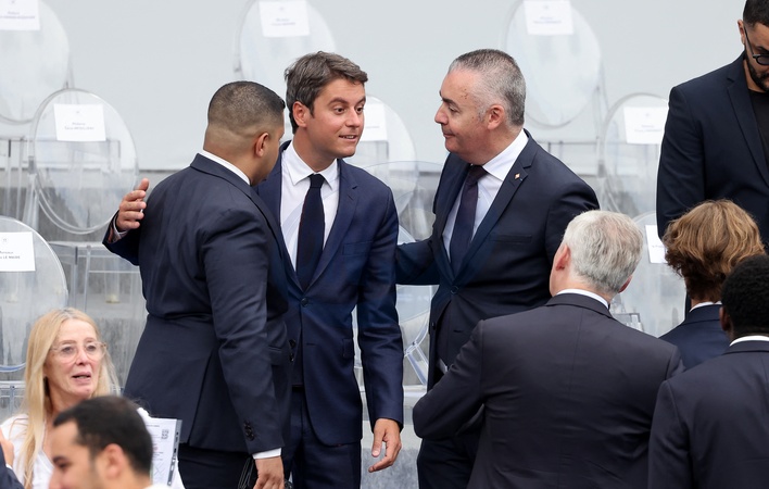Gabriel Attal, Premier ministre, lors d'un bain de foule à la cérémonie du 144ème défilé militaire du 14 juillet, jour de la Fête Nationale, à Paris, France, le 14 juillet 2024. © Dominique Jacovides/Bestimage rench President during the Bastille Day parade, in Paris, France, on July 14, 2024.