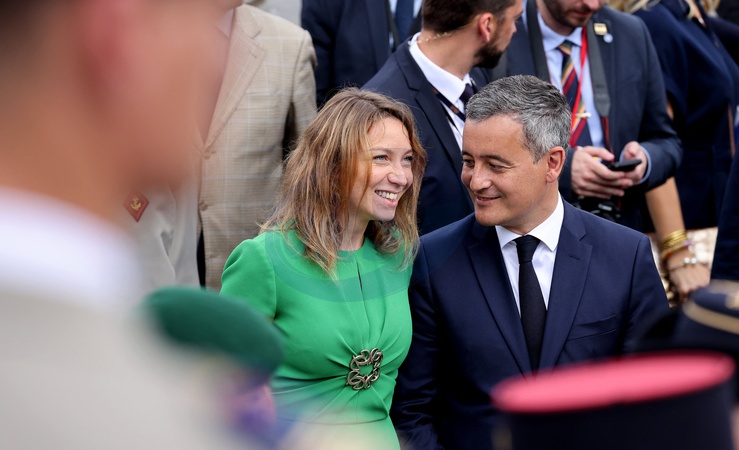 Gérald Darmanin, ministre de l'Intérieur et des Outre-mer, et sa femme Rose-Marie Devillers lors d'un bain de foule à la cérémonie du 144ème défilé militaire du 14 juillet, jour de la Fête Nationale, à Paris, France, le 14 juillet 2024. © Dominique Jacovides/Bestimage rench President during the Bastille Day parade, in Paris, France, on July 14, 2024.
