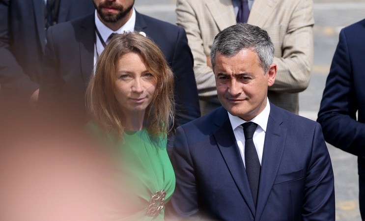 Gérald Darmanin, ministre de l'Intérieur et des Outre-mer, et sa femme Rose-Marie Devillers lors d'un bain de foule à la cérémonie du 144ème défilé militaire du 14 juillet, jour de la Fête Nationale, à Paris, France, le 14 juillet 2024. © Dominique Jacovides/Bestimage rench President during the Bastille Day parade, in Paris, France, on July 14, 2024.