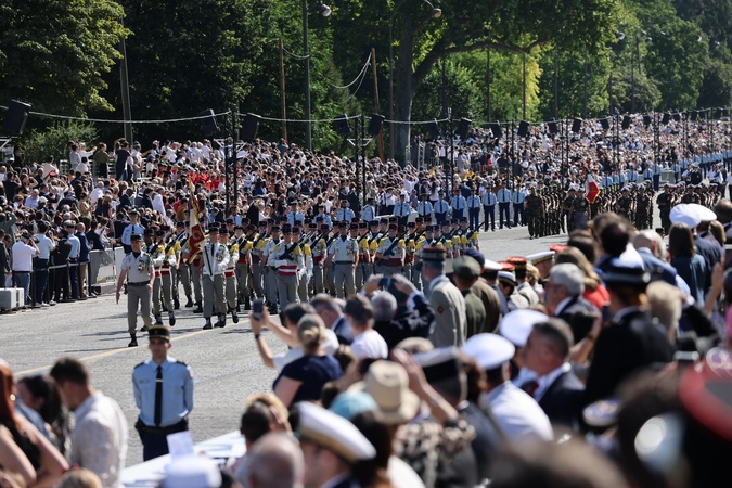Cérémonie du 144ème défilé militaire du 14 juillet, jour de la Fête Nationale, avenue Foch à Paris