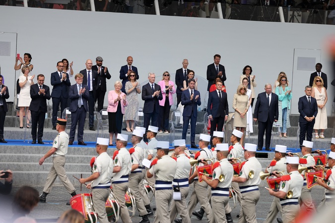 Brigitte Macron Uroczystość 144. defilady wojskowej 14 lipca, w Święto Narodowe, aleja Foch w Paryżu