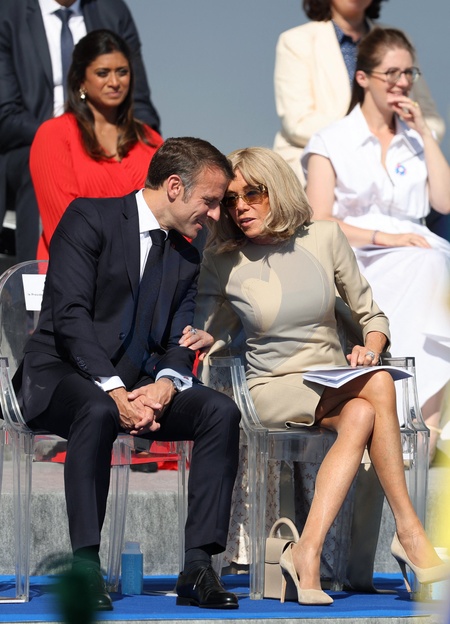Brigitte Macron Uroczystość 144. defilady wojskowej 14 lipca, w Święto Narodowe, aleja Foch w Paryżu