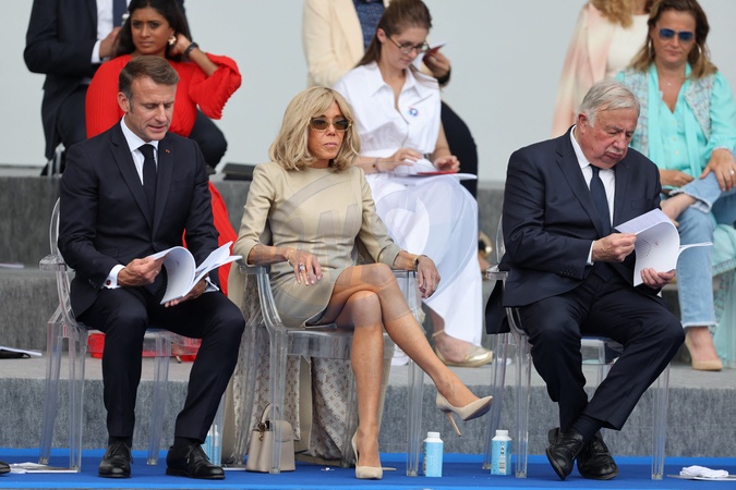 Brigitte Macron Uroczystość 144. defilady wojskowej 14 lipca, w Święto Narodowe, aleja Foch w Paryżu