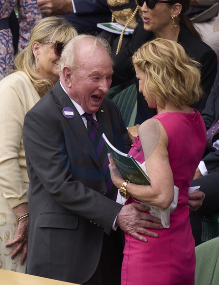 Rod Laver and Chrissie Evert in the Royal box during the men's final on centre court between Carlos Alcaraz (ESP) and Novak Djokovic (SRB) at the 2024 Wimbledon Championships at The All England Club, London, United Kingdom , 14 July 2024, Credit:Peter van den Berg / Avalon