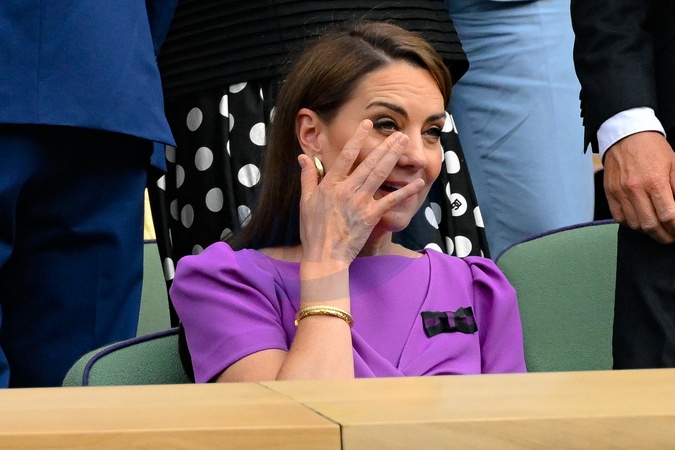 Catherine (Kate) Middleton avec la princesse Charlotte et Pippa Middleton dans les tribunes de la finale du tournoi de Wimbledon 2024
