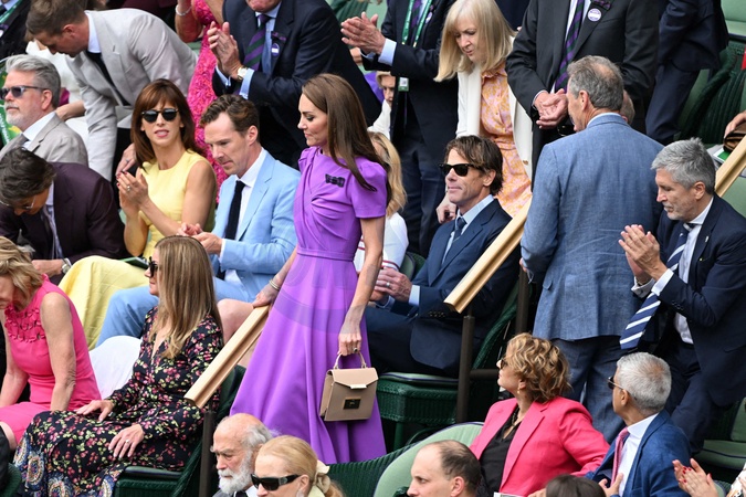 Catherine (Kate) Middleton avec la princesse Charlotte et Pippa Middleton dans les tribunes de la finale du tournoi de Wimbledon 2024, le 14 juillet 2024. Catherine (Kate) Middleton with Princess Charlotte and Pippa Middleton in the stands of the final of the 2024 Wimbledon tournament, July 14, 2024.