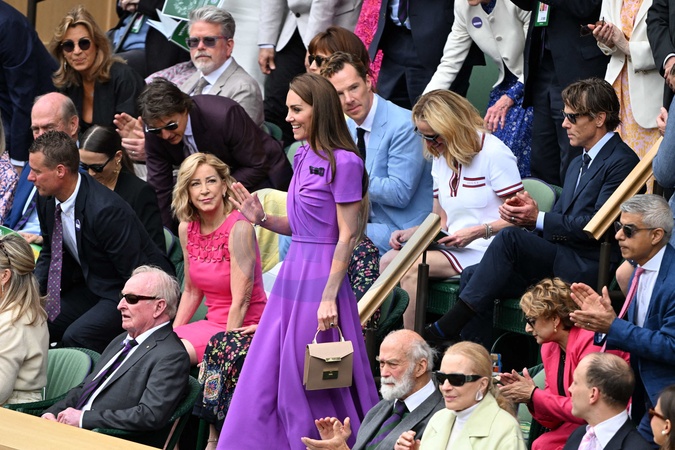 Catherine (Kate) Middleton avec la princesse Charlotte et Pippa Middleton dans les tribunes de la finale du tournoi de Wimbledon 2024, le 14 juillet 2024. Catherine (Kate) Middleton with Princess Charlotte and Pippa Middleton in the stands of the final of the 2024 Wimbledon tournament, July 14, 2024.