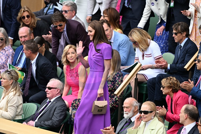 Catherine (Kate) Middleton avec la princesse Charlotte et Pippa Middleton dans les tribunes de la finale du tournoi de Wimbledon 2024, le 14 juillet 2024. Catherine (Kate) Middleton with Princess Charlotte and Pippa Middleton in the stands of the final of the 2024 Wimbledon tournament, July 14, 2024.