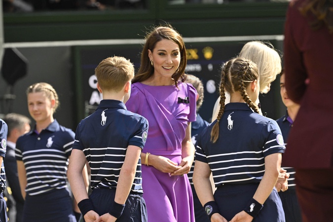 Catherine (Kate) Middleton remet la coupe à Carlos Alcaraz après sa victoire face à Novak Djokovic en finale du tournoi de Wimbledon 2024 (6/2 - 6/2 - 7/6)