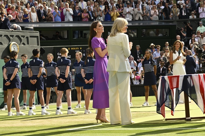 Catherine (Kate) Middleton remet la coupe à Carlos Alcaraz après sa victoire face à Novak Djokovic en finale du tournoi de Wimbledon 2024 (6/2 - 6/2 - 7/6)