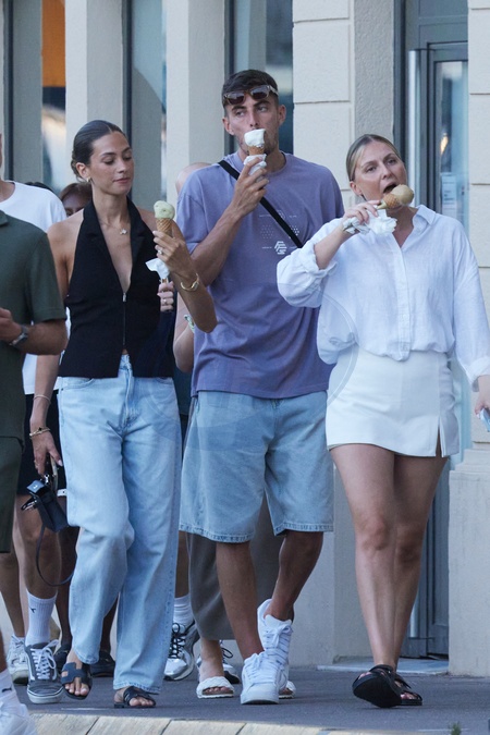Kai Havertz i jego partnerka Sofia Weber jedzą lody podczas spaceru z przyjaciółmi po porcie Saint-Tropez