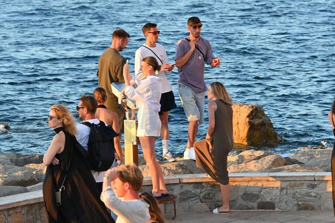 Kai Havertz i jego partnerka Sofia Weber jedzą lody podczas spaceru z przyjaciółmi po porcie Saint-Tropez