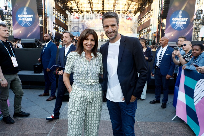 Exclusif - Anne Hidalgo, Tony Estanguet - Backstage du "Concert de Paris" sur le parvis de l'hôtel de ville de Paris retransmis en direct sur France 2 et sur France Inter, Paris le 14 juillet 2024. © Christophe Clovis- Pierre Perusseau / Bestimage Exclusive - For Germany call for price - No Web For Belgium and Switzerland - Backstage of the "Concert de Paris" on the forecourt of Paris City Hall broadcast live on France 2 and France Inter, Paris on July 14, 2024.