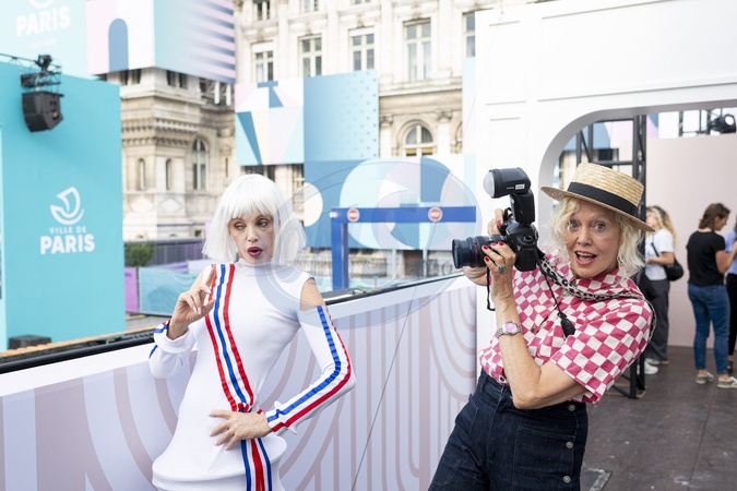Exclusif - Arielle Dombasle et Ellen von Unwerth - Backstage du "Concert de Paris" sur le parvis de l'hôtel de ville de Paris retransmis en direct sur France 2 et sur France Inter, Paris le 14 juillet 2024. © Christophe Clovis- Pierre Perusseau / Bestimage Exclusive - For Germany call for price - No Web For Belgium and Switzerland - Backstage of the "Concert de Paris" on the forecourt of Paris City Hall broadcast live on France 2 and France Inter, Paris on July 14, 2024.