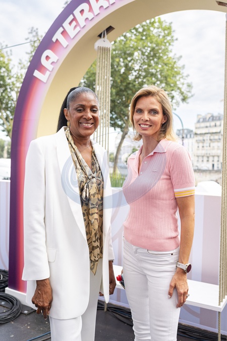 Exclusif - Marie-Jose Perec et Sylvie Tellier - Backstage du "Concert de Paris" sur le parvis de l'hôtel de ville de Paris retransmis en direct sur France 2 et sur France Inter, Paris le 14 juillet 2024. © Christophe Clovis- Pierre Perusseau / Bestimage Exclusive - For Germany call for price - No Web For Belgium and Switzerland - Backstage of the "Concert de Paris" on the forecourt of Paris City Hall broadcast live on France 2 and France Inter, Paris on July 14, 2024.