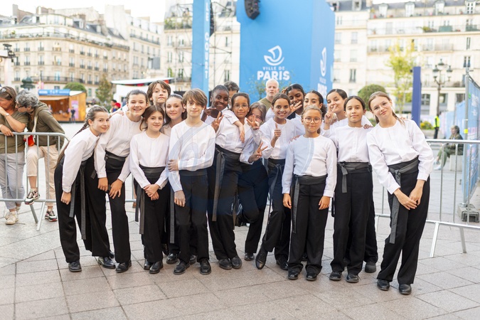 Exclusif - Les choristes - Backstage du "Concert de Paris" sur le parvis de l'hôtel de ville de Paris retransmis en direct sur France 2 et sur France Inter, Paris le 14 juillet 2024. © Christophe Clovis- Pierre Perusseau / Bestimage Exclusive - For Germany call for price - No Web For Belgium and Switzerland - Backstage of the "Concert de Paris" on the forecourt of Paris City Hall broadcast live on France 2 and France Inter, Paris on July 14, 2024.