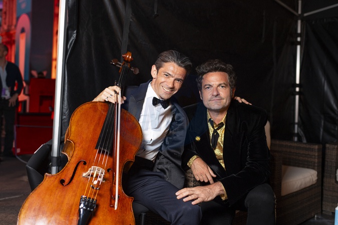 Exclusif - Gautier Capuçon et M (Matthieu Chedid) - Backstage du "Concert de Paris" sur le parvis de l'hôtel de ville de Paris retransmis en direct sur France 2 et sur France Inter, Paris le 14 juillet 2024. © Christophe Clovis- Pierre Perusseau / Bestimage Exclusive - For Germany call for price - No Web For Belgium and Switzerland - Backstage of the "Concert de Paris" on the forecourt of Paris City Hall broadcast live on France 2 and France Inter, Paris on July 14, 2024.