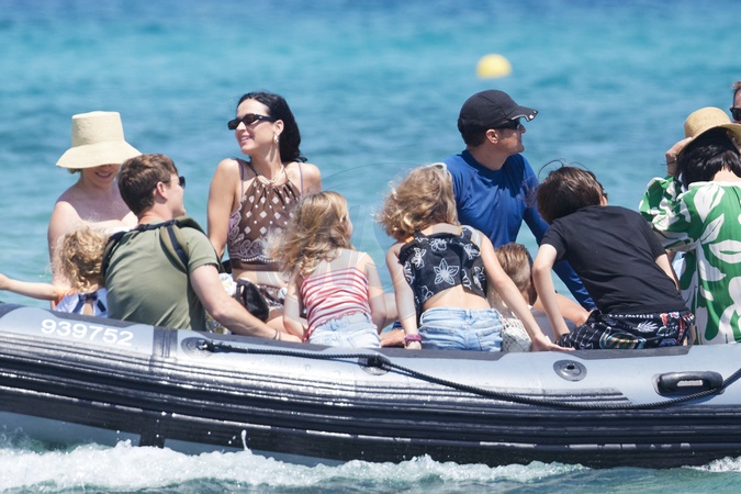 Katy Perry, jej narzeczony Orlando Bloom, ich córka Daisy Dove, syn Orlando Flynn Christopher i przyjaciele przybywają do Club 55 w Saint-Tropez