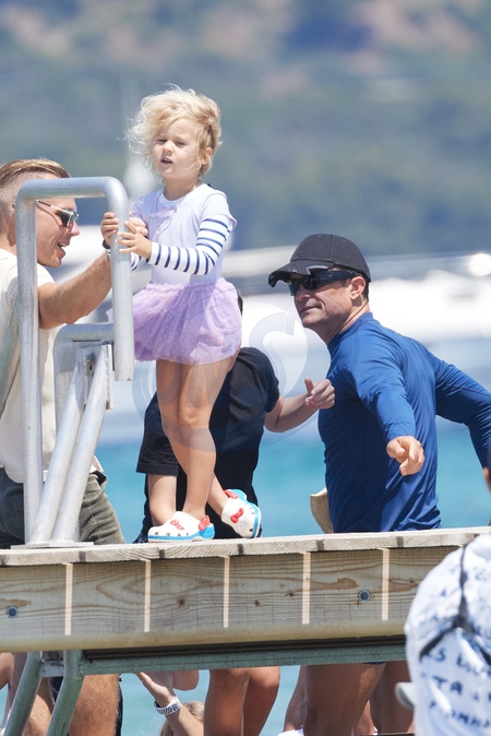 Katy Perry, jej narzeczony Orlando Bloom, ich córka Daisy Dove, syn Orlando Flynn Christopher i przyjaciele przybywają do Club 55 w Saint-Tropez