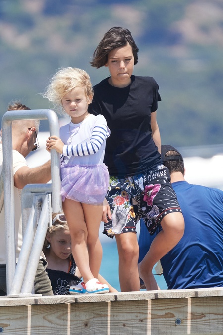 Katy Perry, jej narzeczony Orlando Bloom, ich córka Daisy Dove, syn Orlando Flynn Christopher i przyjaciele przybywają do Club 55 w Saint-Tropez
