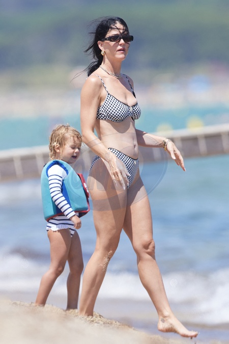 Katy Perry, jej narzeczony Orlando Bloom, ich córka Daisy Dove, syn Orlando Flynn Christopher i przyjaciele przybywają do Club 55 w Saint-Tropez