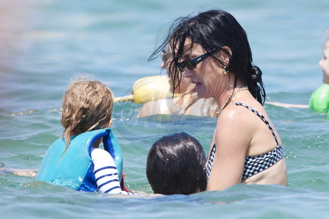 Katy Perry, jej narzeczony Orlando Bloom, ich córka Daisy Dove, syn Orlando Flynn Christopher i przyjaciele przybywają do Club 55 w Saint-Tropez