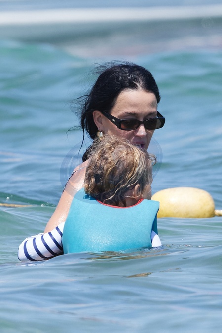 Katy Perry, jej narzeczony Orlando Bloom, ich córka Daisy Dove, syn Orlando Flynn Christopher i przyjaciele przybywają do Club 55 w Saint-Tropez