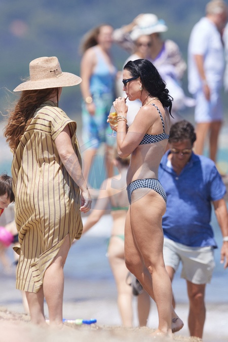 Katy Perry, jej narzeczony Orlando Bloom, ich córka Daisy Dove, syn Orlando Flynn Christopher i przyjaciele przybywają do Club 55 w Saint-Tropez