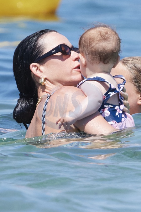 Katy Perry, jej narzeczony Orlando Bloom, ich córka Daisy Dove, syn Orlando Flynn Christopher i przyjaciele przybywają do Club 55 w Saint-Tropez