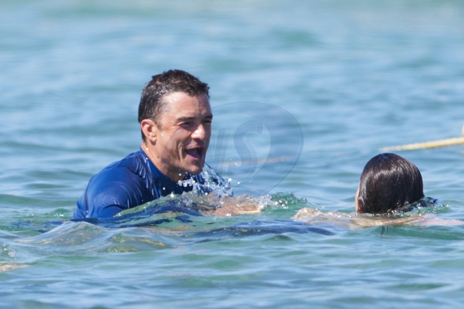 Katy Perry, jej narzeczony Orlando Bloom, ich córka Daisy Dove, syn Orlando Flynn Christopher i przyjaciele przybywają do Club 55 w Saint-Tropez