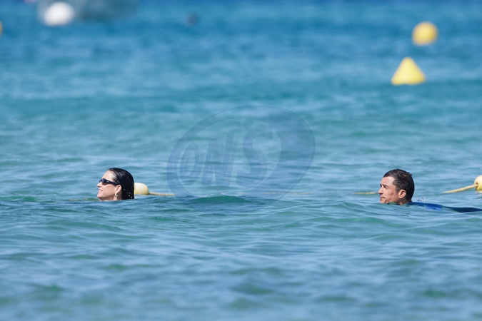 Katy Perry, jej narzeczony Orlando Bloom, ich córka Daisy Dove, syn Orlando Flynn Christopher i przyjaciele przybywają do Club 55 w Saint-Tropez