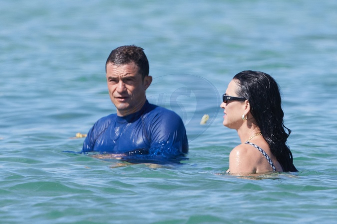 Katy Perry, jej narzeczony Orlando Bloom, ich córka Daisy Dove, syn Orlando Flynn Christopher i przyjaciele przybywają do Club 55 w Saint-Tropez