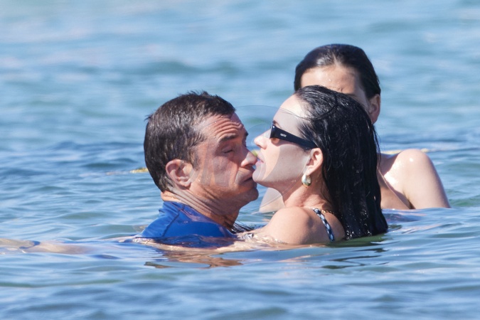 Katy Perry, jej narzeczony Orlando Bloom, ich córka Daisy Dove, syn Orlando Flynn Christopher i przyjaciele przybywają do Club 55 w Saint-Tropez