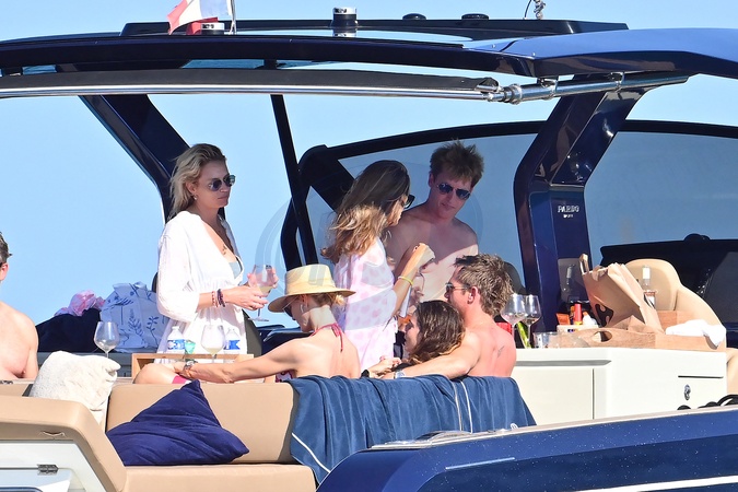 Exclusif - James Blunt, sa femme Sofia Wellesley et des amis profitent d'une belle journée à bord du yacht "Belle Jour" dans le Golfe de Saint-Tropez, Côte d'Azur, France, le 15 juillet 2024. James a profité jusqu'à 19h avant son concert à Cannes ce soir. No Web pour la Belgique et la Suisse Exclusive - For Germany Call For Price - James Blunt, his wife Sofia Wellesley and friends enjoy a lovely day aboard the yacht 'Belle Jour' in the Gulf of Saint-Tropez, French Riviera, France on July 15, 2024. James enjoyed until 7 p.m. before his concert in Cannes this evening.