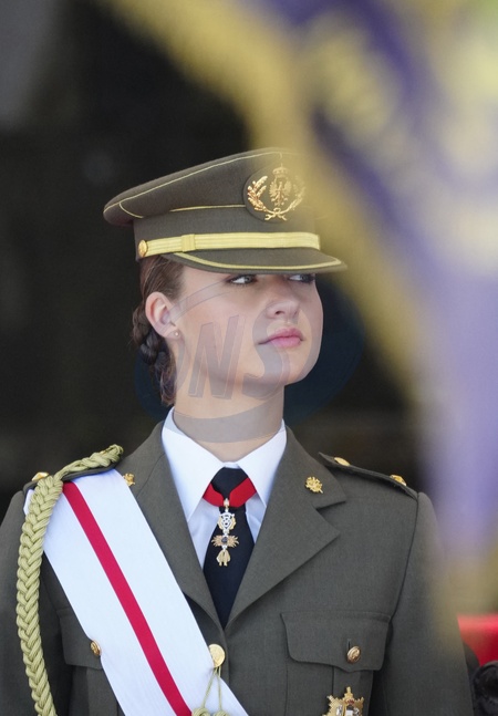 King Felipe VI (Le roi Felipe VI d'Espagne), Queen Letizia (La reine Letizia d'Espagne) and Crown Princess Leonor (La princesse Leonor) attend the delivery of Royal offices of employment at the Naval Military School on July 16, 2024 in Marin, Spain. © Lalo Yasky/Bestimage