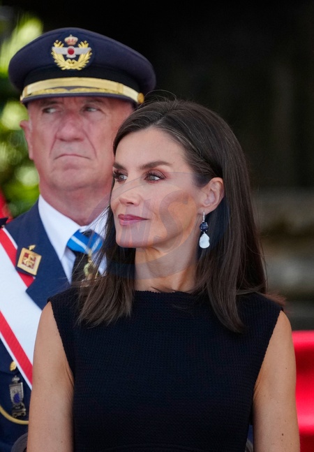 King Felipe VI (Le roi Felipe VI d'Espagne), Queen Letizia (La reine Letizia d'Espagne) and Crown Princess Leonor (La princesse Leonor) attend the delivery of Royal offices of employment at the Naval Military School on July 16, 2024 in Marin, Spain. © Lalo Yasky/Bestimage