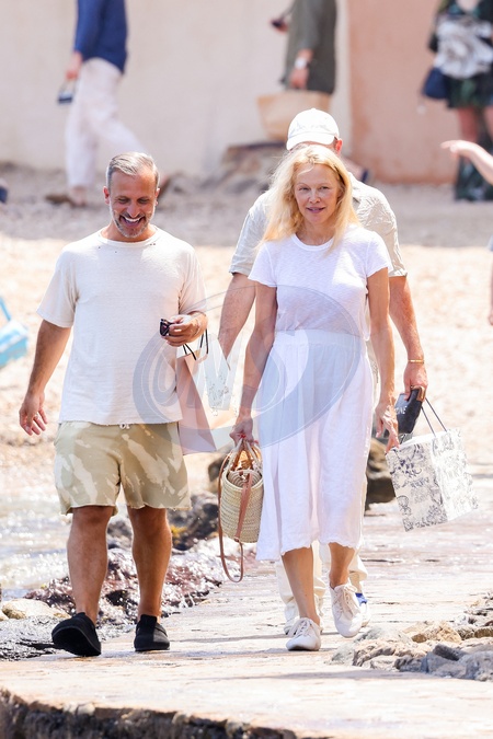 Bez makijażu i w stylu bohemy Pamela Anderson opuszcza hotel Byblos i krótki spacer po Saint-Tropez