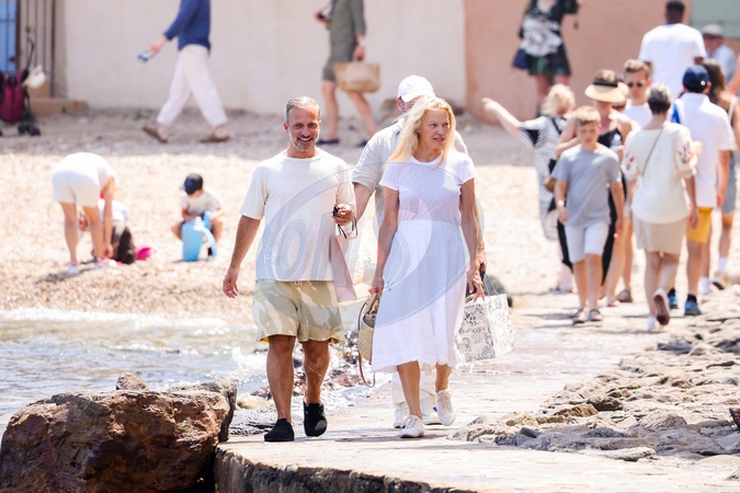 Bez makijażu i w stylu bohemy Pamela Anderson opuszcza hotel Byblos i krótki spacer po Saint-Tropez