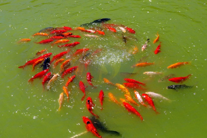 UMAN, UKRAINE - JULY 6, 2024 - Koi fish swim in a circle in a pond at the Sofiivka National Dendrological Park, Uman, Cherkasy region, central Ukraine., Credit:Volodymyr Tarasov / Avalon