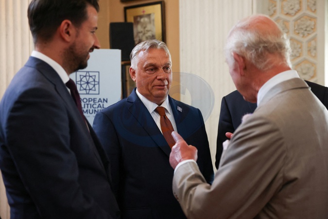 Britain's King Charles talks with Hungarian Prime Minister Viktor Orban during the European Political Community meeting at Blenheim Palace, near Oxford, Britain July 18, 2024., Credit:Hollie Adams / Avalon