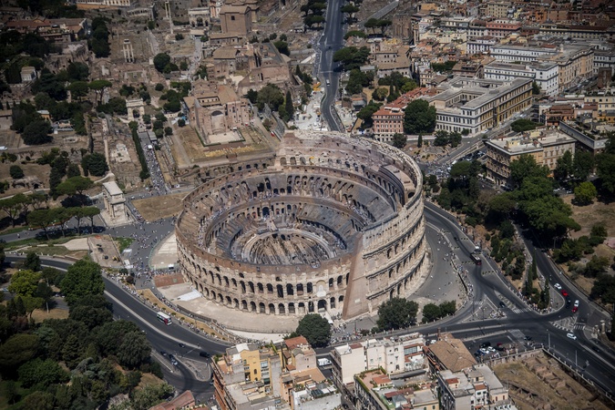Rome: Helicopter flight over the capital. Colosseo and Foro Romano, Credit:Alessandro Serran˜ / Avalon
