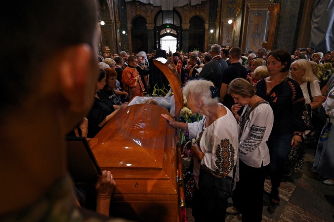 LVIV, UKRAINE - JULY 21, 2024 - People pay their last respects to linguistic professor and former MP Iryna Farion, who was shot dead on the street on July 19, during the memorial service at the Saints Peter and Paul Garrison Church, Lviv, western Ukraine., Credit:Anastasiia Smolienko / Avalon